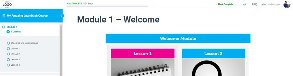 Adding custom navigation buttons to your LearnDash LMS ‘Focus Mode’ header area (or Masthead) is easy and effective. It’s especially useful if you want to link to resources made available throughout a course, or your FAQ page. Let’s look at how we can customise the header area in Learndash LMS by adding our own custom navigation buttons.