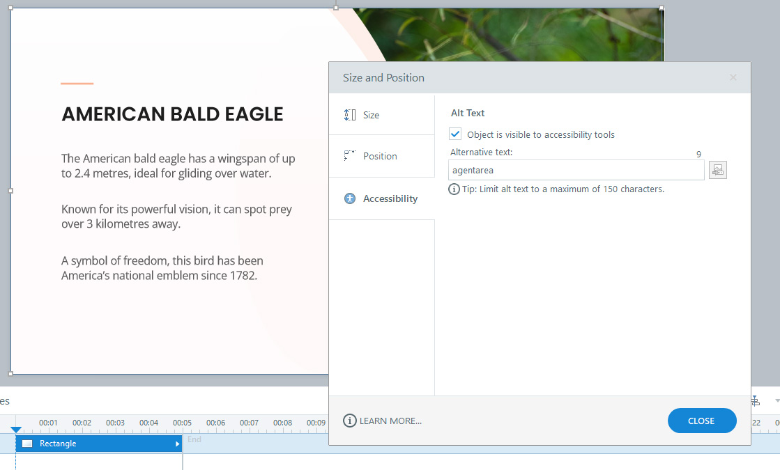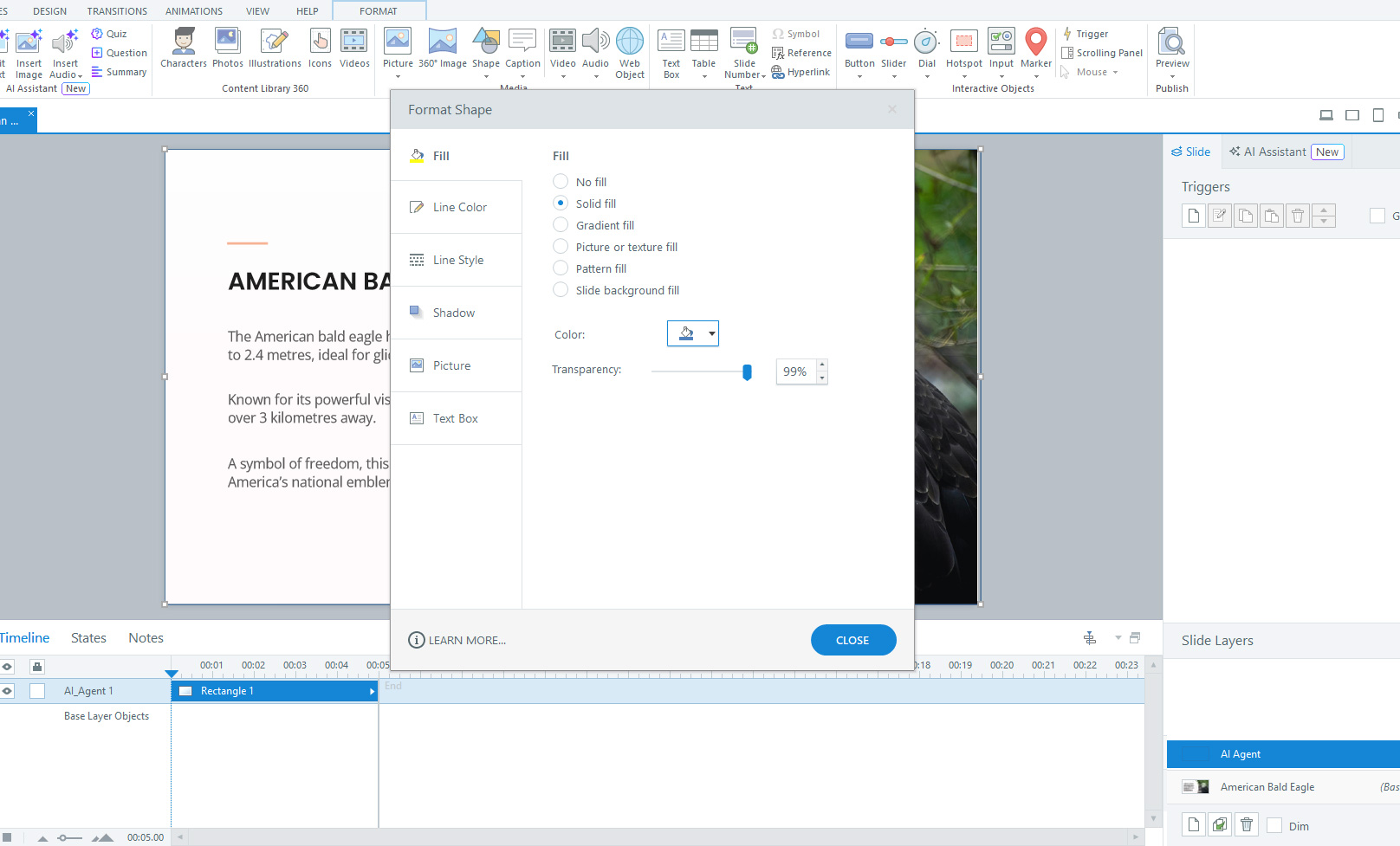 - Open your Storyline project and create a new rectangle on your slide or on a dedicated layer.