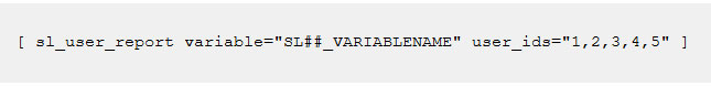 sl_user_report variable="SL##_VARIABLENAME" user_ids="1,2,3,4,5" (in square brackets)