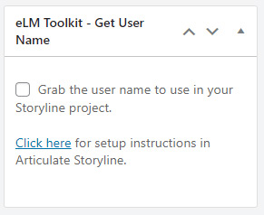 A new metabox will become available on all edit screens for posts and pages, allowing you to select which specific pages you wish to include a JavaScript reference to the learner’s name on the page.